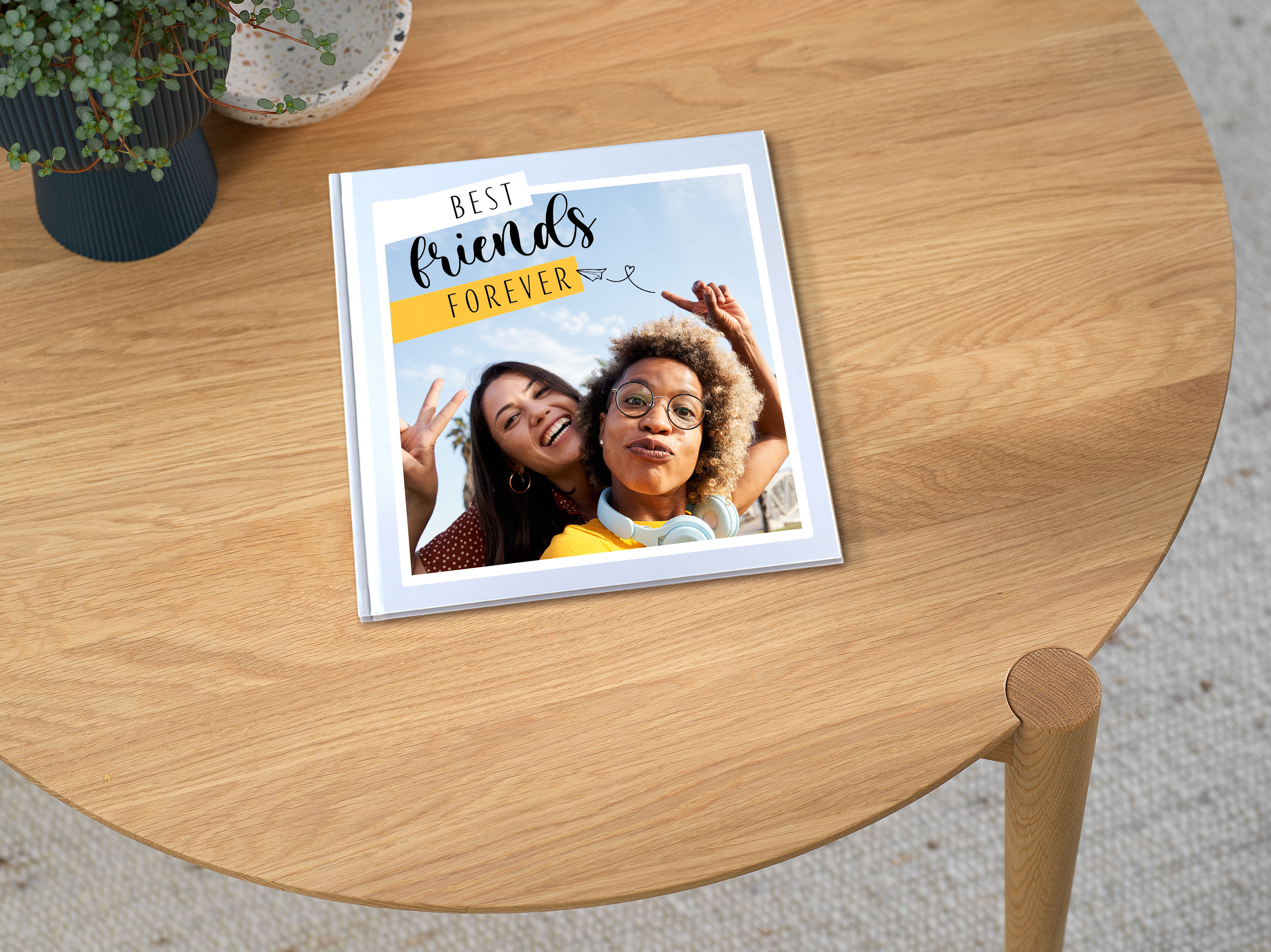 I vår kostnadsfria app är det som roligast att skapa en fotobok till din bästa vän – dessutom kan du använda bilderna direkt från mobilen. Se fram emot massor av designmöjligheter och en present som är precis lika unik som er vänskap.