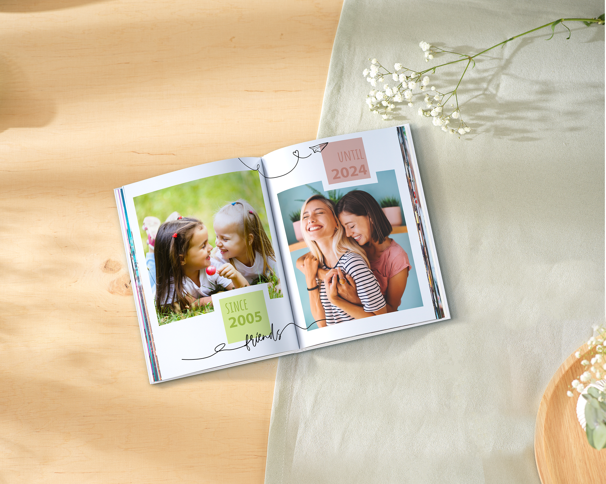 Designa en fotobok som matchar din bästa väns stil perfekt – använd till exempel våra fina cliparts.
