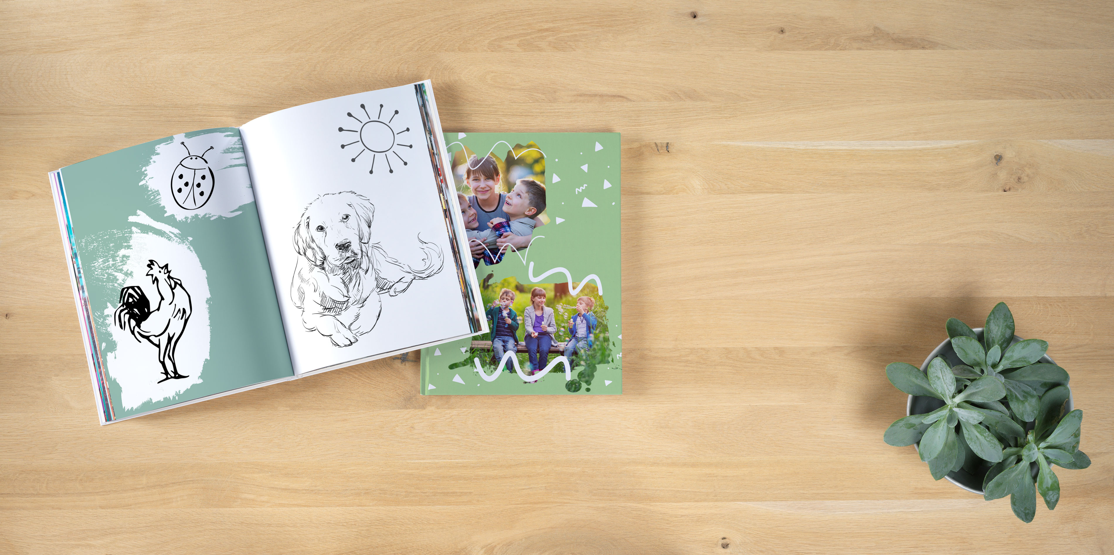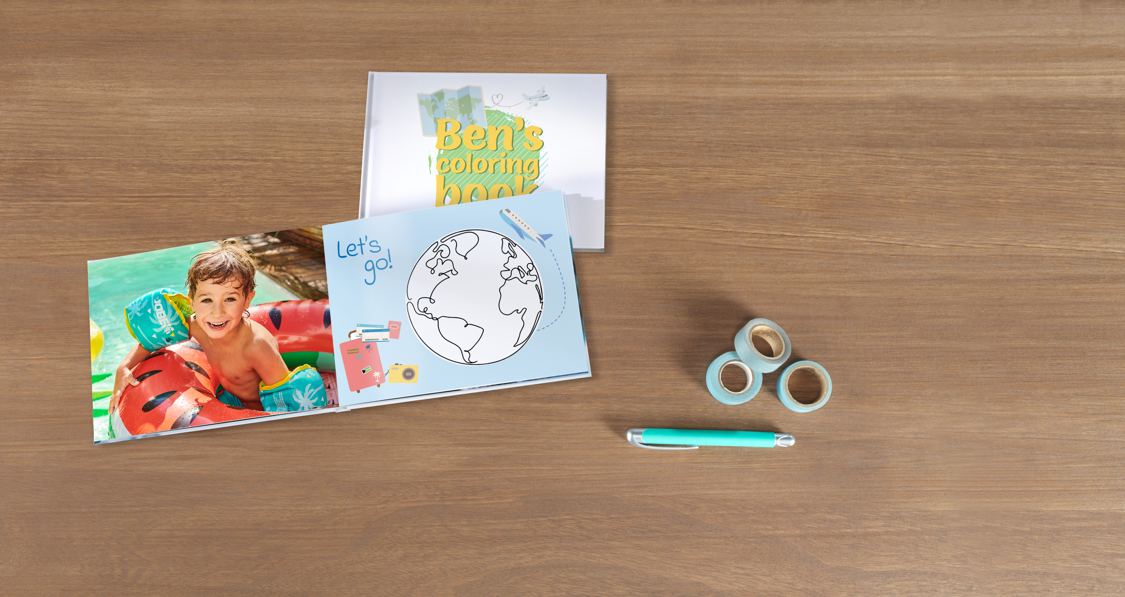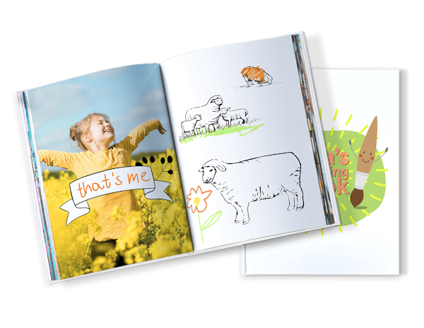 Layflat-bindning: Med denna bindning kan boken öppnas helt plant. Det gör att barnen kan måla över hela uppslaget utan att boken slår igen eller att mittenpartiet döljs.