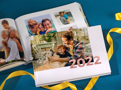 Med ett collage av dina egna bilder kan du designa ditt årsboksomslag med höjdpunkterna från dina bästa minnen.